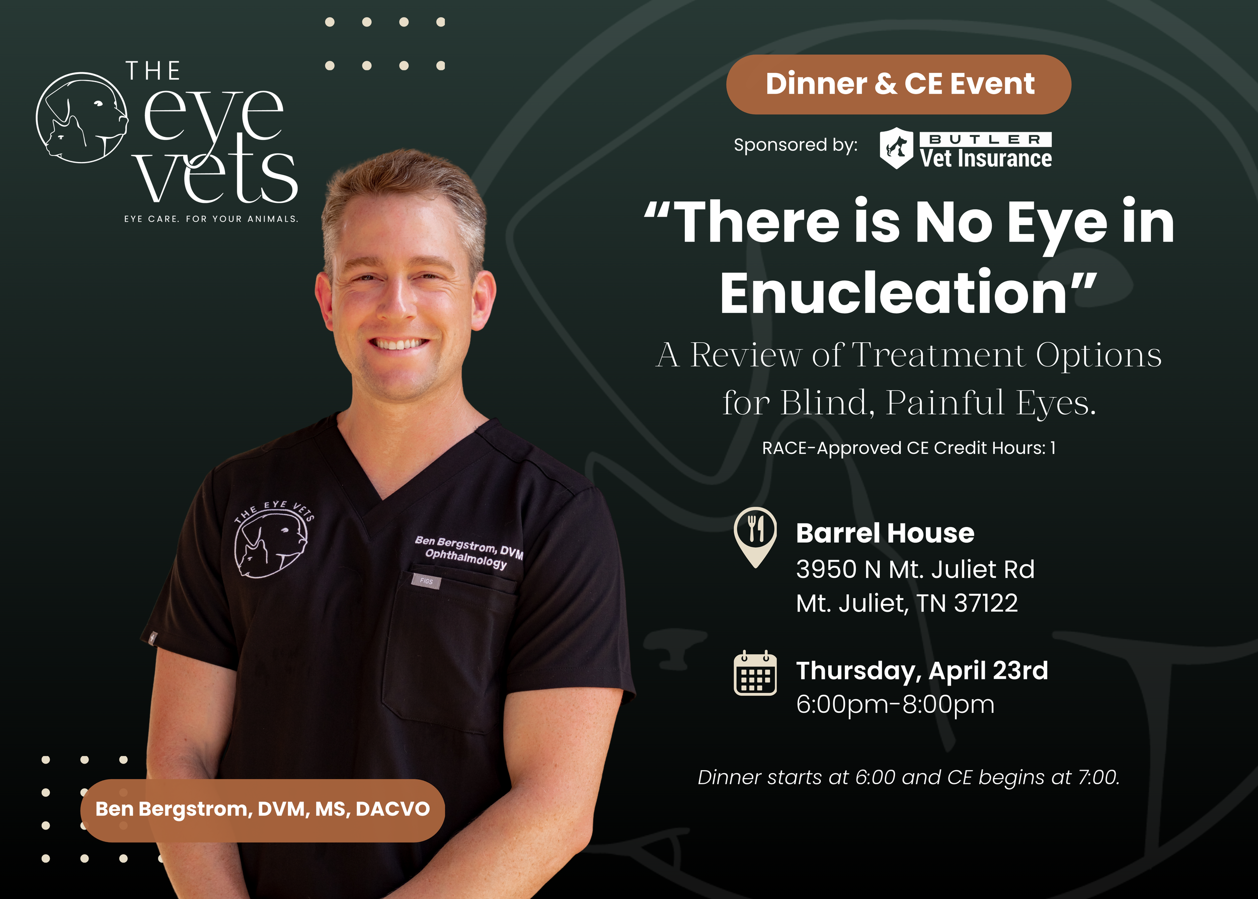 Seats are limited for this lecture and it is for ALL VETERINARY PROFESSIONALS.